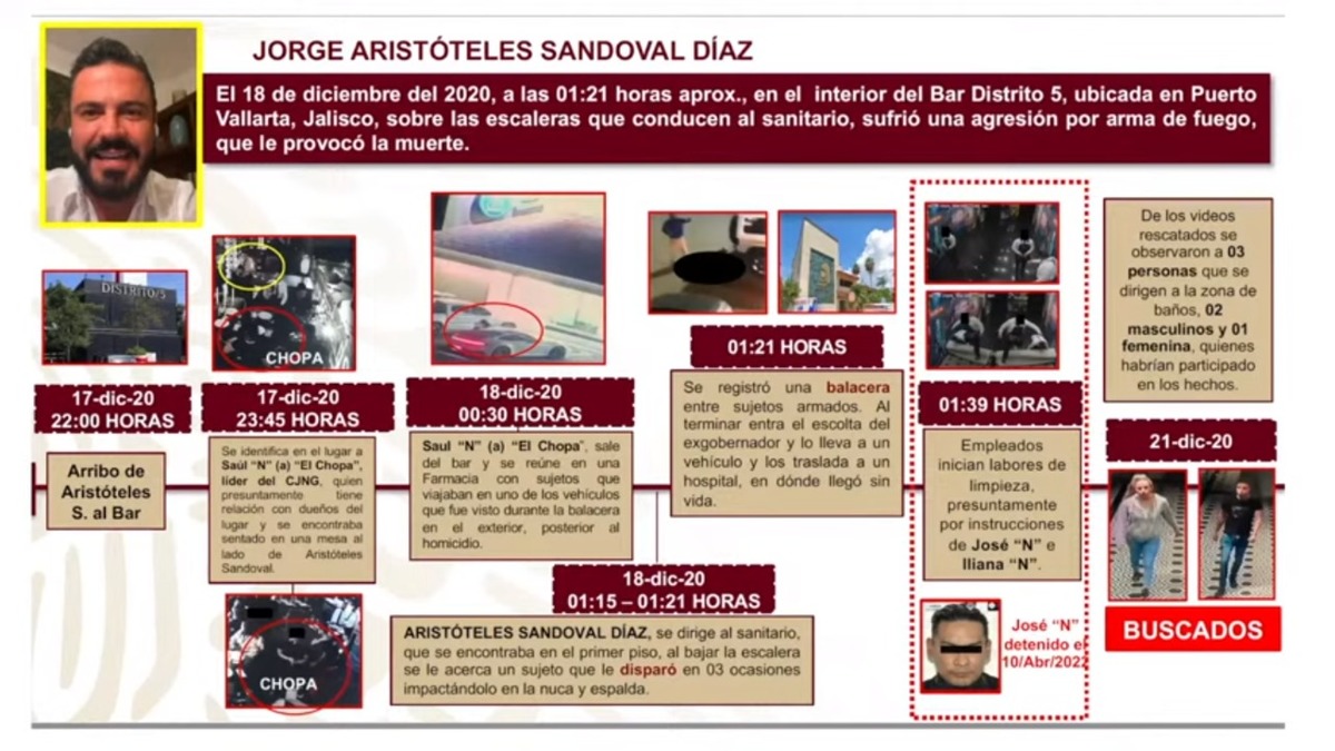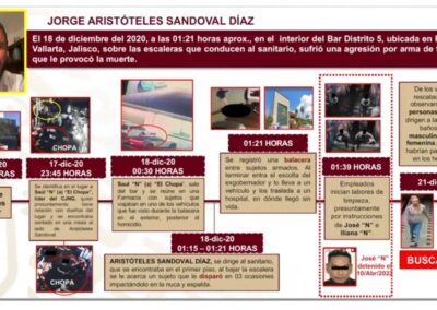 La investigación sobre el magnicidio reveló una escena del crimen adulterada. José Manuel Sánchez Cruz «Manu Vaquita», socio del bar Distrito 5 admitió ordenar al personal que limpiará la escena del crimen y se deshiciera de evidencia. Manu Vaquita fue detenido 2021 por su presunta participación en el homicidio y posteriormente liberado en 2023. En 2026, el actual gobernador de Jalisco, Pablo Lemus Navarro, confirmó que las investigaciones no han concluido y se mantienen diligencias activas para esclarecer la red de complicidad detrás del magnicidio.