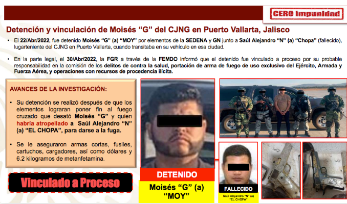 El 8 de abril de 2015, debido a la expansión territorial y la violencia del CJNG, la Oficina para el Control de Activos Extranjeros (OFAC) del Departamento del Tesoro de los Estados Unidos boletinó por primera vez al CJNG y al Mencho, así como a Los Cuinis. La presión obligó a las autoridades federales a lanzar un operativo para capturar a «El Mencho» solo un mes después, en mayo de 2015. Sin embargo, el operativo fracasó y resultó en el derribo de un helicóptero militar, narcobloqueos en Guadalajara, Puerto Vallarta y otros municipios de Jalisco, así como el asesinato de 9 agentes de seguridad.