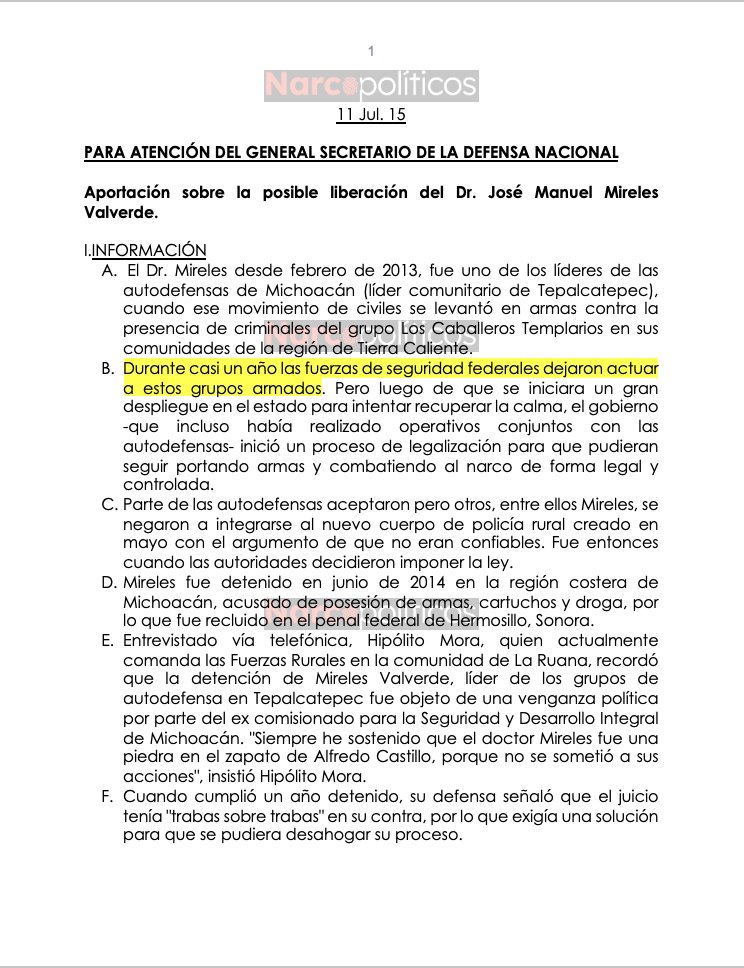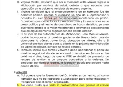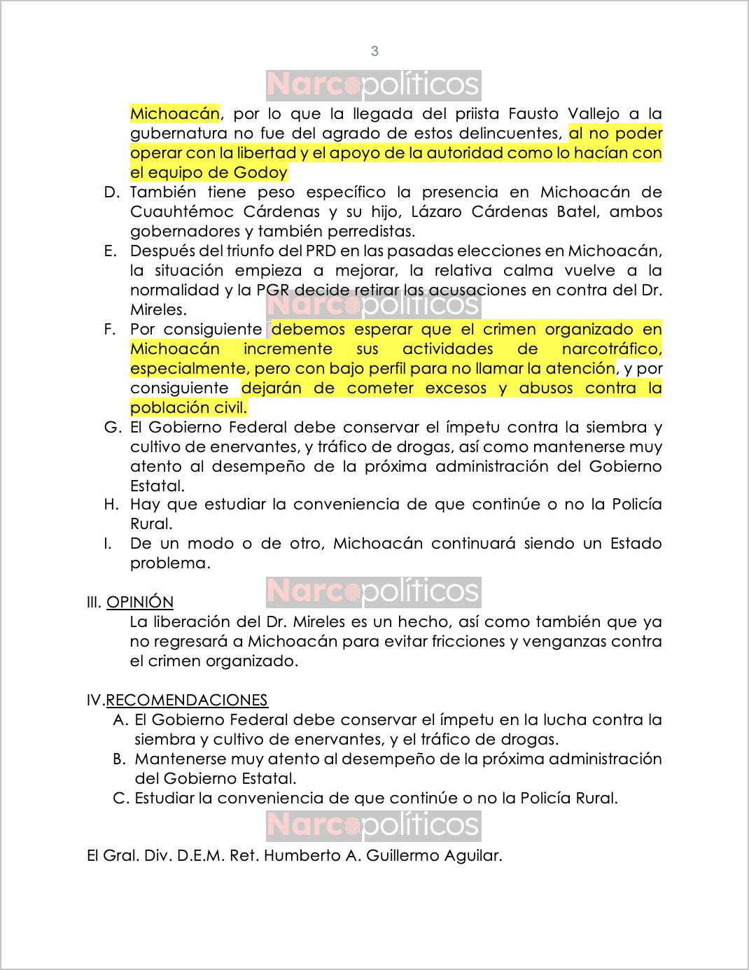 El documento señala que los cárteles operaban con libertad y el apoyo de la autoridad cuando Godoy fue gobernador y generaron caos en Michoacán para que el PRD regresara al poder en la elección de 2015, cuando Silvano Aureoles, extompañero de Godoy, fue electo gobernador. La SEDENA señaló que, tras el regreso del PRD, esperaba que los cárteles recuperaran su poder en Michoacán y se les permitiera operar libremente, aunque de manera más discreta.