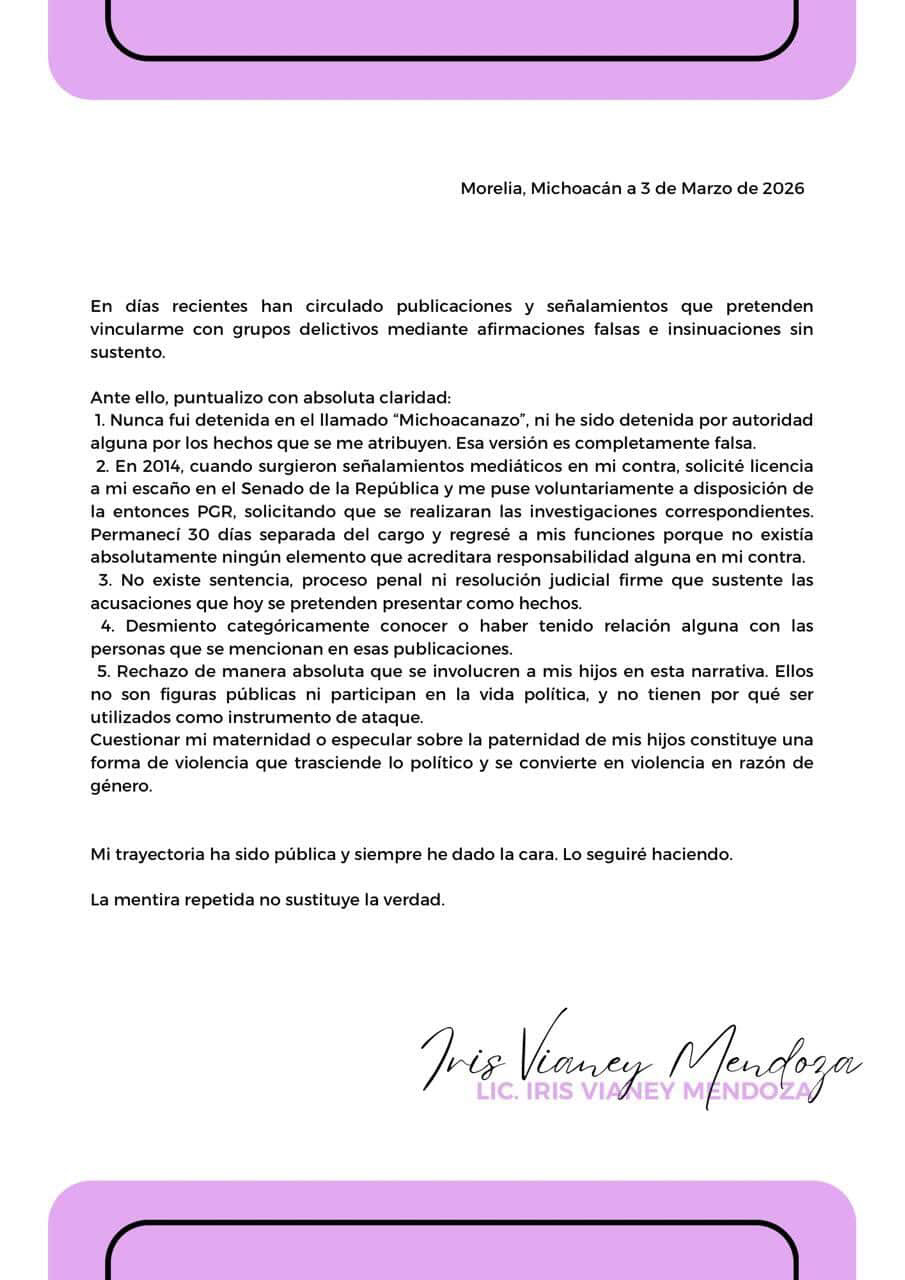 Derecho de Réplica solicitada por Iris Vianey Mendoza
