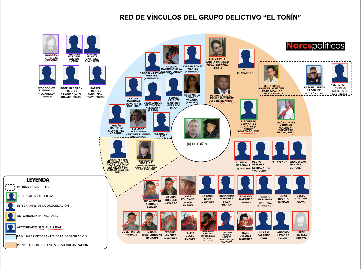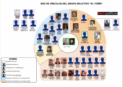 Ahora, un documento inédito obtenido por Narcopolíticos, filtrado a través de Guacamaya Leaks y publicado más abajo, muestra una red de vínculos elaborada por la SEDENA en la cual Néstor Camarillo es señalado como uno de los principales integrantes de la organización delictiva de El Toñín. El documento también señala a Pascual Mirón Nabor, director de Seguridad Pública de Camarillo, como otro organización criminal. Según la SEDENA, ambos funcionarios tenían «posibles vínculos» con «El Tigre», miembro de Los Zetas.