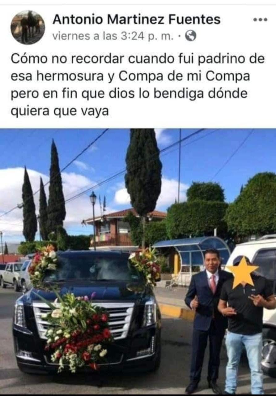El informe de la Policía Federal y Pemex coincide con la red de vínculos de la SEDENA, al señalar que el grupo huachicolero de El Toñín trabajaba con Néstor Camarillo, entonces alcalde priísta de Quecholac, y su director de seguridad pública. Otra prueba de la relación entre ambos personajes es una fotografía publicada por El Toñín en Facebook, donde “apadrina” una camioneta Cadillac Escalade junto con Néstor Camarillo.