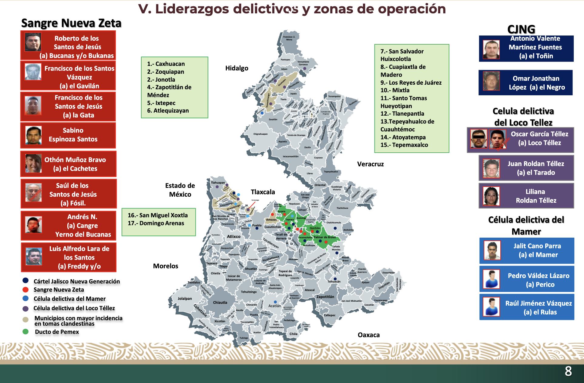Organización huachicolera de El Toñín en el Triángulo Rojo de Puebla, aliada con el Cártel Jalisco Nueva Generación (CJNG).